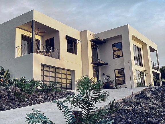 Back on Market, no fault of Seller or Property. Rare opportunity to purchase a Modernist Home in Hawaii. Fabulous Ocean Vistas and only 8 blocks to Pebble Beach in the popular Kona Paradise. Inspired by the Bauhaus, Mid-century Modernism and Architects such as Corbusier and Mies Van der Rohe this 1 year old home will not disappoint! Seller is a licensed Contractor and built this home for retirement but needs to return to the Mainland. Priced below estimated replacement cost of 1,200,000 + lot. Large and spacious on an oversized lot (40% larger lot than the standard size in Kona Paradise). Highly engineered on a slab foundation. Insulated! Think of what owning a new home can mean in regards to maintenance and obsolescence! Exterior is fire and pest resistant stucco. A premium $120,000 value!