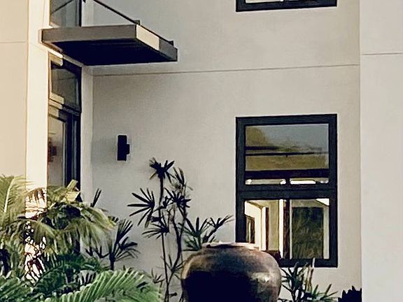 The exterior windows and doors are of very high-end quality and design. They are powder coated aluminum with Low-e double paned tempered glass. All doors and windows have a minimum height of 8 ft to capture the amazing views and light.