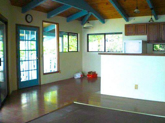 You will find just absolutely striking ocean, sunsets and coastline views from this attractive 2 bedrooms, 2 baths home built on oversize lot at popular beach community development called Kona Paradise. The house has been refurbished four years ago and the future owner will appreciate to see the unfinished basement with more than 300 sq ft area that can be easily converted into additional living space. The 396 sq. ft. of open basement (no walls) where the catchment tank is located also provides ample storage space. Cathedral open beam ceilings throughout the living area and lots of windows makes the house bright and airy and brings the ocean view to every corner.Ample room for expansion in the back of the house where the land is nicely level as well as room for garage or carport in front of the house.The beach is just short drive down the hill and wow, swim, fish, snorkel, windsurf or just relax, no wonder this is called Kona Paradise!