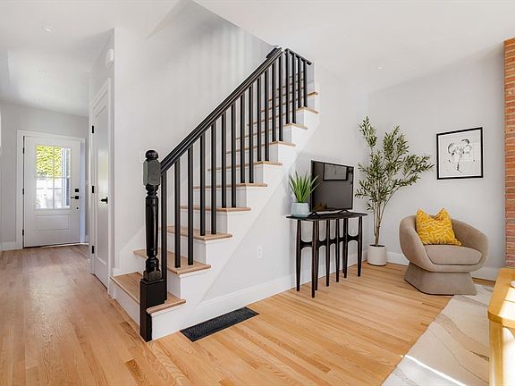 Tucked into a quiet residential enclave on the border of bustling East Cambridge and Kendall Square, this end row house has been thoughtfully renovated from stem to stern, the result is a light-filled home with chic finishes, good flow, well proportioned rooms and ample storage! And one of the best features is the spacious and serene rear patio + garden, perfect for hosting or relaxing! The main level comprises high ceilings and plenty of windows. The eat-in kitchen is open to the dining area and packs a punch with plenty of work spaces, storage, induction range and easy access to the back patio. The living room is perfect for unwinding and a half bath completes this level. Upstairs, are two spacious bedrooms with vaulted ceilings and good closets, as well as a full bath with a tub. Additional amenities include EV charger capability, washer/ dryer, unfinished basement, solar ready. Steps away are restaurants, spinning studios, parks, Kendall Theater, MIT, Charles River, and Red Line T.