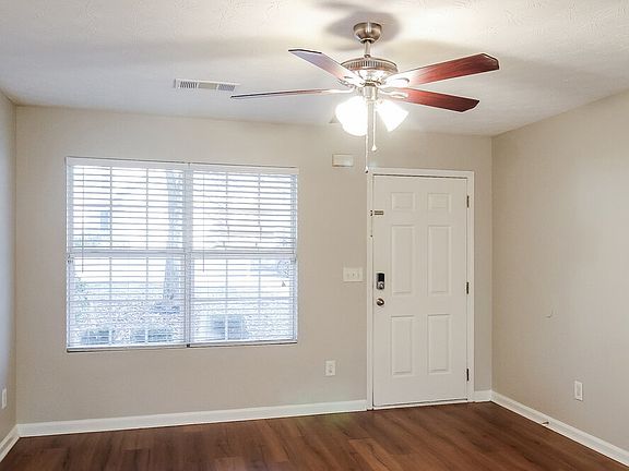 You'll love this 1,507-square-foot Newnan rental home with four bedrooms and two-and-a-half bathrooms. Enter the space shared by the dining room, living room, and kitchen with its beautiful laminate flooring, cooling ceiling fan, bright windows, and door that opens to the backyard. The kitchen has attractive cabinetry, expansive countertops, and a double sink with a gooseneck faucet. Use its two closets to store nonperishables. Find the bedrooms upstairs. You'll relish the size of the main bedroom and stay comfortable beneath its ceiling fan. Store your apparel in the large closet, and enjoy the privacy of the en suite bathroom. This bathroom has two of its own closets for linens and sundries. Apply for this home now.