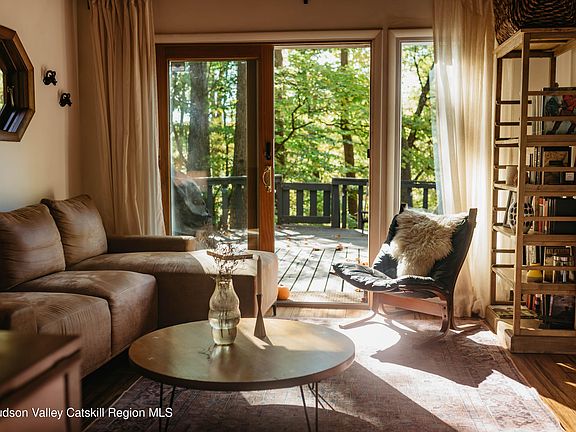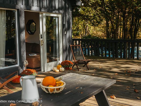 Tucked away on 15.25 wooded acres, this rustic Kerhonkson retreat perfectly balances country charm with resort-style living. The two-bedroom cottage with a loft features an updated kitchen, dining room, and a cozy living area anchored by a woodstove—warm, simple, and full of character. Outside, a wraparound deck leads to the pool, sauna, firepit, and full-size tennis court for endless summer days. Wander the private trails through the woods to Mill Brook Creek, where you can slow down and reconnect with nature. Three parcels total offer room to expand or create a larger compound—an idyllic Hudson Valley getaway with space to dream.