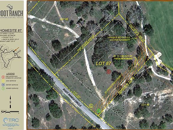 This homesite is one of the last available golf course lots located on Boot Ranch Circle and places you in the center of the action with Metzger Park, FIT Club, Ranch Club, and the Clubhouse just a short cart ride away. Enjoy golf course frontage with the Hole 11 fairway just past your backyard. This level lot and building envelope invite you to build your dream home or family getaway. Don't miss your opportunity to become part of Boot Ranch, the finest private club community in Texas.