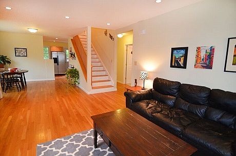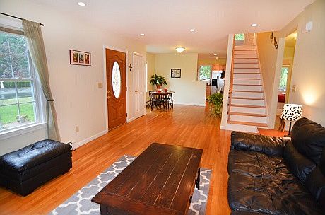 Looking for a renovated, move-in condition house? Totally renovated in 2007 including kitchen and baths. Master bedroom suite on second floor has a private bathroom, walkin closet, and a den-type room for exercise area or office; master bedroom is a quiet haven from the 1st floor! The First floor has an Open Concept across the front of the house as well as 8 foot ceilings...oak floors in the Livingroom, Diningroom and Kitchen and oak staircase to 2nd floor. The two 1st floor bedrooms are private and have their own full bath. All mechanical systems (heat. electrical, hot water) are modern. Enjoy seating outside and grilling w/ a large 24ft patio (pavers) and exceptional fenced yard offers privacy. There's an oversized 1-car garage. Commuter train station and RT3 are minutes away; plus convenience of local post office, shopping and restaurants. The floor plan for this house is exceptional. This house is clean, crisp and immaculate!