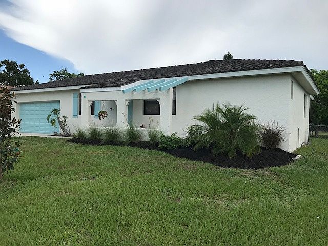 Beautiful Florida home with a water view in a serene and peaceful neighborhood. The home has been completely remodeled in 2018. The list of new and improved items on the exterior are: new roof, exterior painted, new patio pavers and rocks, all new landscaping and trees. The interior upgrades are: all new plank, wood-look tile floors throughout, new 5" wood baseboards, walls painted, new vanities, toilets, tub and tiled showers in both bathrooms, all new wood kitchen cabinets, appliances, beautiful tiled backsplash, breakfast bar added with additional seating for 4, all new 2" wood miniblinds, all new lighting and improved electrical work throughout. So many little things have been redone it's like a brand new house inside. The AC was also new in 2016. Yard is large enough to add a pool. 2 bedroom 2 bathroom home in one of the most sought after communities in Rotonda West. The lanai has a beautiful view of the canal with a fenced in backyard. This home also has a 2 car attached garage and is near 5 golf courses, minutes to shopping, restaurants, world class fishing and beaches.