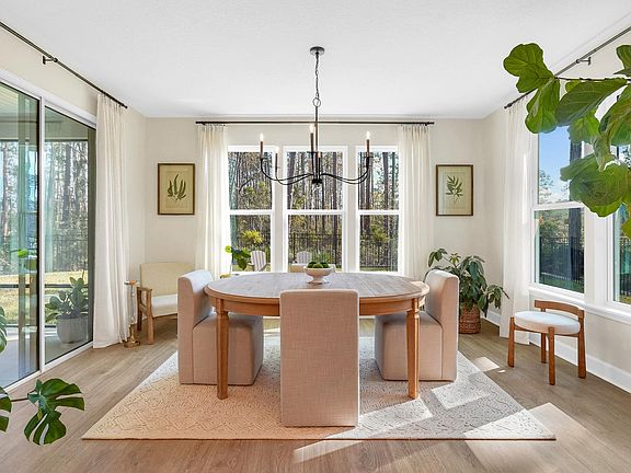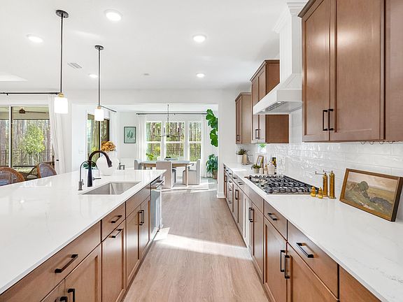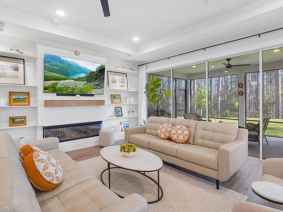 Welcome to your Florida retreat in sought-after TrailMark! Built in 2024 and tucked away on a quiet cul-de-sac, this 3 bedroom, 2.5 bath home with a flex bonus room/office sits on an exceptional 1/3-acre wooded preserve lot, offering privacy, space, and a true connection to nature. Inside, every detail feels fresh and elevated. You’ll love the no-carpet lifestyle with upgraded Mohawk luxury vinyl plank flooring throughout, plus a full interior repaint (Sept 2025) for a clean, modern look. The open living area is anchored by a custom built-in wall unit and 3D Touchstone electric fireplace, creating a cozy focal point for entertaining or relaxing. The kitchen is equally impressive with updated cabinetry and a statement ZLINE 36” white wood hood. Thoughtful upgrades continue with custom wood closet systems and designer lighting. Step outside to enjoy your screened back porch with painted concrete flooring, overlooking the serene preserve backyard and newly installed fence (May 2025) perfect for pets, play, or peaceful mornings. The 3-car garage has been finished with durable, sleek epoxy flooring, ideal for storage, hobbies, or a home gym. Located in TrailMark, residents enjoy resort-style amenities including a pool, fitness center, dog park, kayak launch at Six Mile Creek, and miles of walking/biking trails all in top-rated St. Johns County schools. This home is the perfect blend of modern comfort, thoughtful upgrades, and a setting that feels like a private getaway all just minutes from shopping, dining, and easy I-95 access.