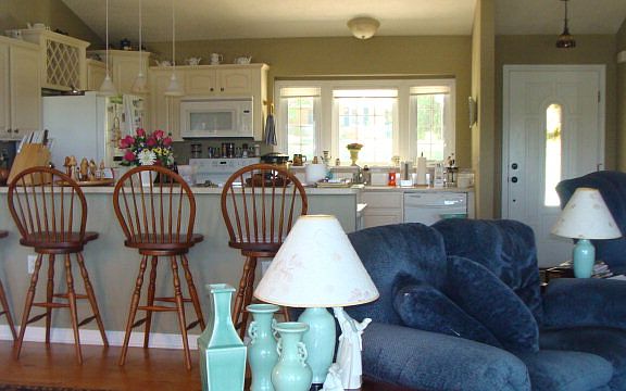 Lovely one of a kind home with open floor plan. Patio doors lead out to a 24 ft. Screened Balcony that offers a pastoral view of surrounding mountains and excellent landscaping. A great spot for your morning coffee or afternoon tea. Three Bedrooms and two full baths. Master BR has compartmental bath with large walkin closet. Home has open plan with kitchen, dining and living areas. Basement with 9 ft. ceilings can be used as 4th BR or Rec room and is plumbed for 3rd bath. On both sides of basement there are 2 car attached garages. Large covered front porch. Patio at basement level. Hookups for washer and dryer on main floor but currently washer and dryer are in basement. Appliances including washer and dryer conveyed with house. Home exhibits obvious TLC in perfect movein condition
