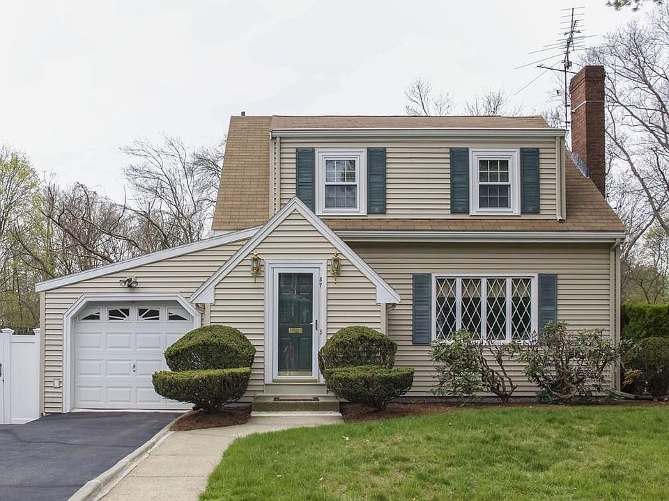 Charming 3 bed, 2 bath English Cape style home on fantastic treelined street in Dedham! Open concept & versatile first floor, ideal for entertaining friends & family. Beautiful fireplaced living room is open to the dining room w/built-ins & has great light. The eat-in kitchen includes stainless appliances & features a built-in breakfast nook. Bonus room off the kitchen has access to the one car garage, & also leads to a deck, where you can enjoy your morning coffee & overlook the beautiful fenced-in yard. Upstairs are three good sized bedrooms w/great closet space & a full bath with a tiled shower.