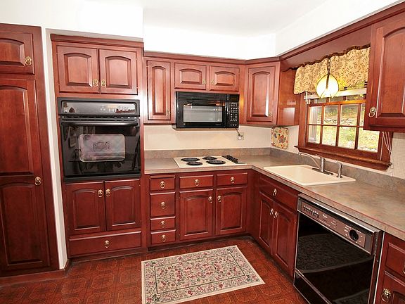 Take a quiet walk around secluded, tree-lined Cold Spring Circle and find this Raised Ranch set back from the road up a gently sloping and treed hill. Oversized lot including hillside frontage w/ majestic trees offering privacy & shade. Level & graded backyard continues on past charming stone wall up terraced rear incline. Beautiful hardwood floors in entry foyer that cont up stairs through main level. Open living space wraps around eat-in kitchen w/ gorgeous custom cherry cabinetry, wall oven & coordinated countertop. 3 generous bedrooms w/ hardwood floors & bath w/ decorative tile floor. Finished lower level is perfect for family room/man-cave/potential in-law w/ 2nd fireplace, pt bath, & 2-car garage access. Property sold "as is", but enormous potential w/ a little bit of care!