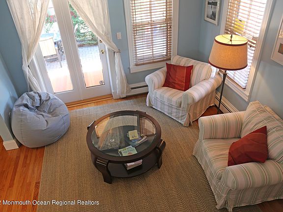 ONLY JUNE- JULY 9 & SEPTEMBER LEFT $1,800/WK. Cuter than a button! This Ocean Grove Victorian cottage offers a private patio and wrap around porch for BBQs and enjoying summer breezes, living room w/ separate TV nook, dining room, updated kitchen w/ Viking stove, full sized W/D, spacious master BR suite on first level, Central A/C downstairs, cable and wifi OH MY! All of this just 4.5 blocks to beach, across the street from lovely park & close to downtown restaurant, NYC transportation and shopping.