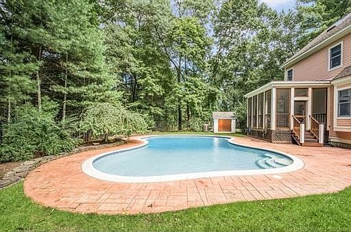 Designed with entertaining in mind, this pristine, custom colonial on a pretty tree-lined neighborhood street is the one you have been waiting for! Gather with family and friends in the expansive center island Chef's kitchen highlighted by warm cherry cabinets, granite countertops and light maple floors open to an adjacent front-to-back great room with a colonial bluestone fireplace and step down bonus area - currently set up as a fabulous billiard room. Step out for fresh air on the quaint sunroom with mahogany floors and a beadboard ceiling overlooking the stunning in-ground Gunite pool and grounds. The spacious dining room with warm hues of green and a cozy study with it's own sweet covered porch offer more intimate options. If that's not enough, check out the fully finished massive third floor bonus room! Four bedrooms, including an impressive en-suite master, full bath and large laundry room complete the second floor. An oversized garage under leads to a tiled mudroom. MUST SEE!