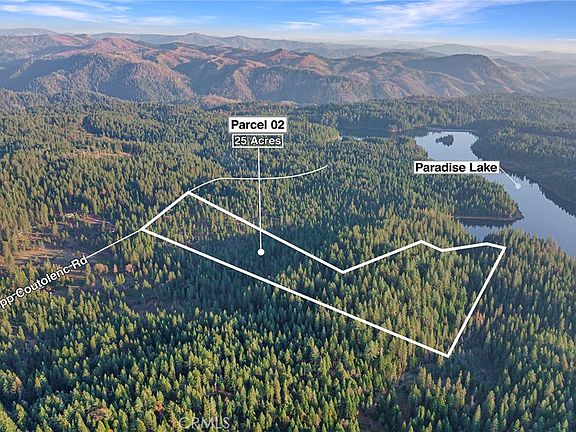 RARE OPPORTUNITY FOR VACANT LAND ON COUTOLENC RD! This acreage is a golden opportunity to have one of the last remaining undeveloped large acreage parcels in the Coutolenc area! This property boarders PID land & Paradise Lake along the northeastern shoreline and could connect to the 3-mile shoreline walking trail, fishing access and wildlife viewing! There are sunny knolls, gentle valleys and some open meadows on this lovely property. It is located less than a mile from the Northlake boat launch on Paradise Lake and is surrounded by beautiful country style homes on large acreage parcels that all provide that serene pastoral environment. The real gem to this beauty is that there is also the ability to connect to fiber optic high-speed internet which is an unheard-of option in most rural areas & properties. This will give you the ability to work from home for those entrepreneurs who long for the best of both worlds...quiet country life and the conveniences of modern technology!! It will feel like another world, but you are only 6 miles to the Magalia post office and shopping center, 7.5 miles to Paradise shopping and 20 miles from Hwy 99 & Skyway in Chico! No other properties offer this list of unique features!! This partially forested property has a gently sloping front portion, a gradual 50-foot drop to the stream valley and the rear part of the property (across the stream) is a steeper hill with a 75-to-100-foot rise. The property has a left dog-leg shape with the south boundary bordering Paradise Lake & PID land. This rear portion offers potential lake access and a potential lake view homesite requiring a long driveway from Coutolenc Rd. A dirt road currently enters the property from Coutolenc and could continue to be used for a driveway or access road. A second road originating from Parcel 1 crosses the middle of this parcel and features a primitive (4-wheel drive only) stream crossing ford. For future use, stream crossing could be best facilitated by building a culvert or small bridge. Stream bridging could be a joint project between parcels 1 & 2, since both properties will require rear acreage access. There are numerous options for a home site and outbuildings and the land is ideally suited for livestock & agricultural use.