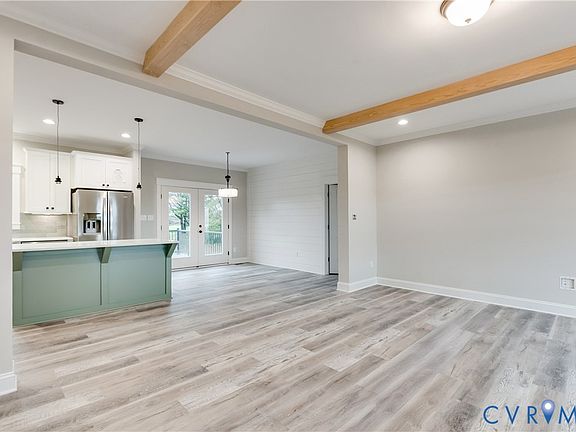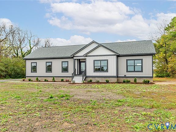 Welcome to this beautifully crafted new construction rancher, offering the perfect blend of modern comfort and coastal charm. With nearly 1,900 square feet of living space, this 4-bedroom (4 bed septic system), 2-bath home showcases practical design, high-end finishes, and quality craftsmanship throughout. Step inside and be greeted by 9-foot ceilings and luxury vinyl plank flooring that flows through every room. The family room is warm and inviting, featuring exposed wood beams that add a touch of rustic elegance. The eat-in kitchen is a chef’s delight, complete with quartz countertops, soft-close cabinetry, tile backsplash, task and recessed lighting, pendant lighting, custom oven hood, a large island, and stainless steel appliances. A huge walk-in pantry provides ample storage, while the dining area features a charming shiplap accent wall and French doors leading to the rear deck — perfect for entertaining or enjoying peaceful evenings. The primary suite, thoughtfully located at the opposite end of the home for privacy, offers a shiplap accent wall with transom window, a spacious walk-in closet, and a luxurious primary bath that has a walk-in tile shower with rainmaker shower head and teak seat, transom window, and double vanity. Additional highlights include a black hardware package, crown molding in every room and a large mud room with a separate entrance, washer/dryer hookups, utility sink and closet. Outside, enjoy a large lot of almost an acre with a concrete sidewalk and a rear Trex-style deck featuring black aluminum railings. This home combines modern efficiency, quality finishes, and timeless style—ready for you to make it your own in beautiful Deltaville, Virginia.
