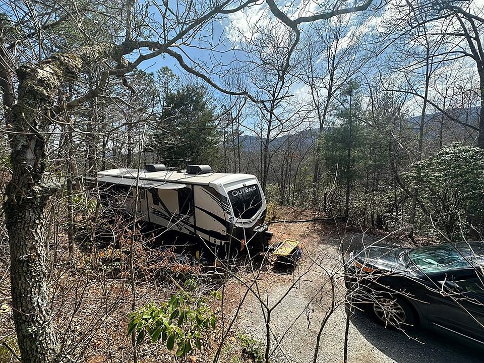 PRICE IMPROVEMENT **MOTIVATED SELLERS** UNRESTRICTED mountain lot with really nice views & awesome sunsets with a camper already on it! The camper is a 38' 2020 Keystone Outback 341RD all-weather model. There is an upper shelf & a lower shelf so there is potential for a second camper or a tiny house. This lot faces south & the elevation is 2440. Nice location only 12 min to Franklin, NC & 22 min to Clayton, Ga. The well is shared with only one neighbor, 2 bedroom septic system is already installed, overhead power with RV hook-up & there is even good cell service with Verizon. Peaceful, private & quiet. Almost at the end of the road with only one house past this lot. The road gets a little steep and bumpy at the end but it is paved all the way to the property so no 4wd needed. This is a rare unrestricted mountain view property so call today!!