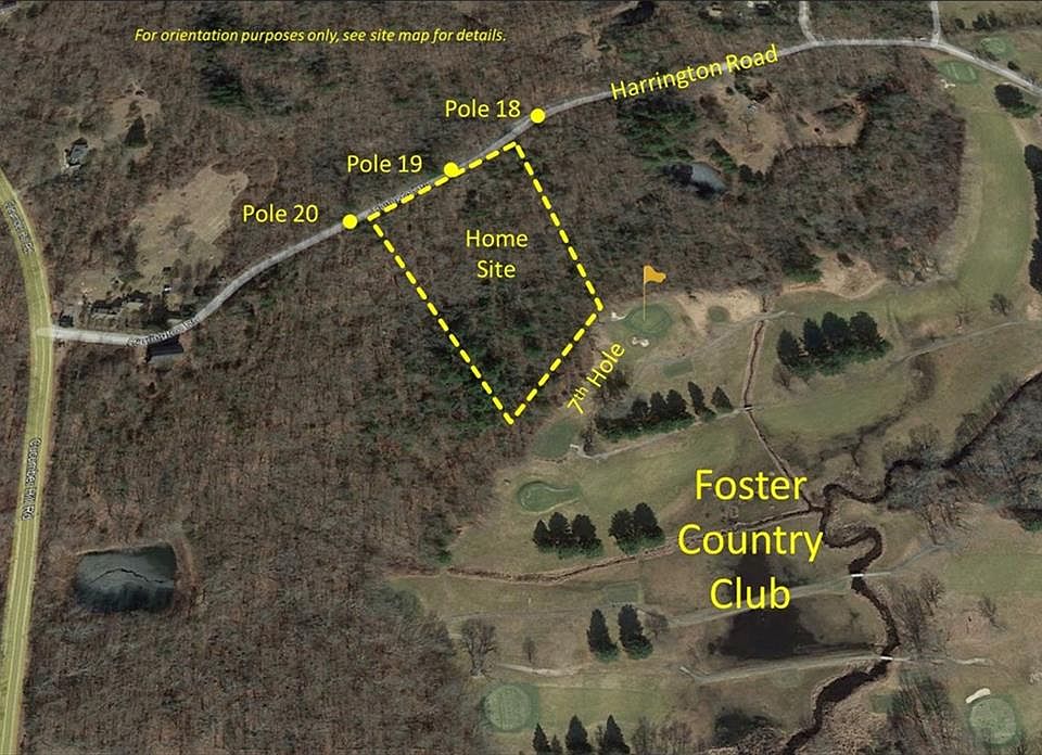 Rare oppourtunity to own a 5-acre shovel ready homesite abutting Foster Country club golf course. RIDEM OWTS permit/approval in place for construction of a 3-4 bedroom home. Wonderful lot with slight front to back slope ideal for a walkout basement. Property has 350+ frontage on Harrington rd with over 400ft overlooking Foster Country Clubs 7th hole. Short ride to Rt 6,395 and less than 20 minutes to restaurants and shopping. This spectacular homesite will not last!