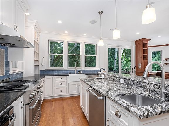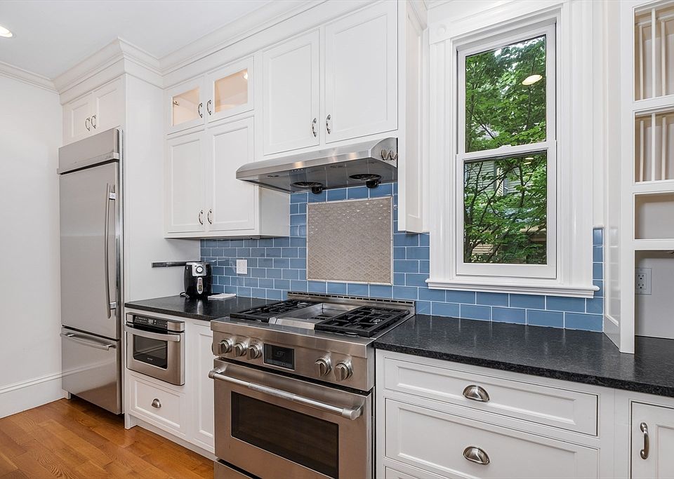 Hard to find in Newton rental market! Gorgeous, warm, renovated and turn-key Victorian on the aqueduct trail in desirable Newton Highlands. Can be rented furinished or empty. Inviting front porch entry & mud room with custom built-ins leads you to fully refurbished foyer with original wood work. Living room with wood burning fireplace, double pocket doors, leaded glass and room for a grand piano or additional seating arrangement. Formal dining with add'l fireplace. Amazing, renovated chef's kitchen with custom cabinetry, dual dishwashers, JennAir gas range and refrigerator, office nook and island seating for 3+. Over-sized deck overlooking a private yard, built-in fire-pit and the aqueduct trail. Library with original pillared entry and half bath complete the living level. Second floor features master suite with renovated bath and walk-in closet, 3 additional bedrooms, guest bath, and washer and dryer. Top floor with two more bedrooms & another bath. Magnificant yard and landscaping!