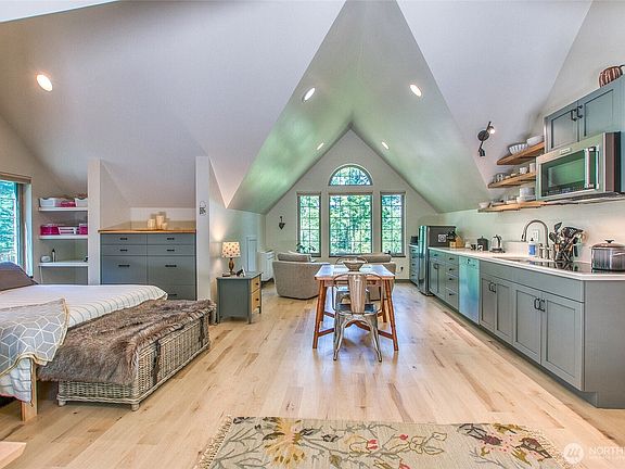 SWEET RETREAT Immaculate Craftsman-style carriage house. 506 sq ft upper level open living space with full bath, covered deck and attic storage. Lower level with radiant floors, includes finished space with half bath and 552 sq ft 2-car garage, currently used as living space. Recent upgrades in upper level include: flooring and trim, closet and built-in bedroom dresser, kitchen, bathroom vanity. Downstairs upgrades include: bathroom vanity, floor paint, new washer/dryer. New interior/exterior paint throughout. Private, mainly level and lightly treed 3.38 acre lot with garden space in desirable Suncrest neighborhood. 3-bedroom septic installed, ready for your main home addition. Near Deer Harbor and Cayou Quay marinas. Fiber optic internet.
