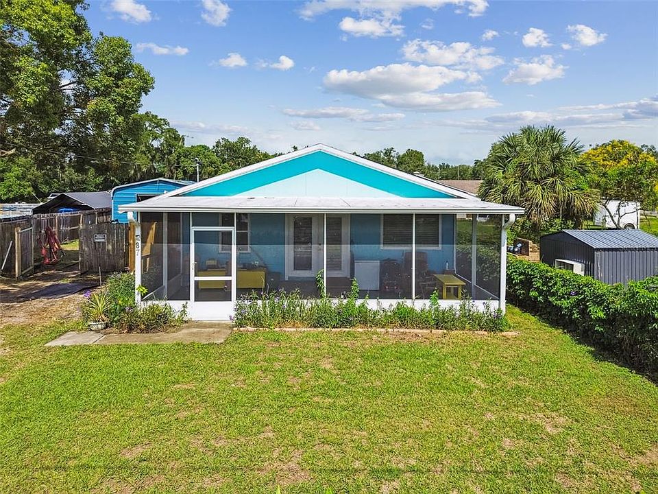 Completely Rebuilt Charmer Near Downtown Umatilla! Step into comfort and convenience with this beautifully rebuilt in 2013 2-bedroom, 2-bath home just minutes from cozy downtown Umatilla. With 1,292 sq ft of thoughtfully updated living space, this move-in-ready gem features a newer roof, AC, PVC plumbing, updated electrical (200 amp service), and energy-efficient windows—all fully permitted with the city. No HOA. Inside, you’ll find durable laminate flooring, a stylish kitchen with solid wood cabinets, and an indoor utility room with washer/dryer hookups. Relax and unwind on the expansive 30' x 13' screened front porch, perfect for year-round enjoyment. Energy costs stay low with a leased solar panel system at just $103/month, bringing your average power bill to only $35/month! Outside, a massive 18' x 24' steel building with power and concrete slab flooring offers endless possibilities—workshop, storage, or hobby space. Conveniently located near major transportation routes, shopping, dining, top schools, and Florida's premier destinations—Walt Disney World, Daytona, New Smyrna & Cocoa Beaches—this home is ideal for first-time buyers, retirees, or anyone looking for a worry-free lifestyle. Don’t miss out—schedule your showing today!