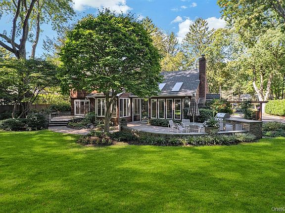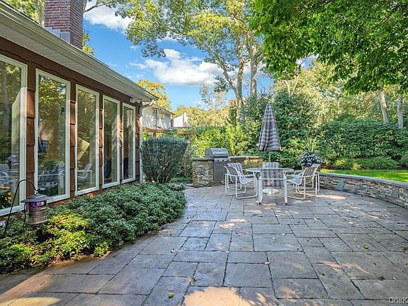 Welcome to this beautifully maintained four-bedroom Colonial, set in the sought-after Village on the Hill community. Situated within the renowned Half Hollow Hills School District, this home combines classic charm with a practical layout for comfortable living and easy entertaining. Elegant French doors open from the dining room onto a stone patio, and hardwood floors lie beneath the carpets in both rooms. The chef's kitchen is equipped with pristine modern cabinetry, new granite countertops, a Bosch stovetop, a Bosch dishwasher, and a barely-used double oven. Enjoy the sunny breakfast nook overlooking the gardens—perfect for year-round views, especially when snow turns it into a serene snow globe scene.