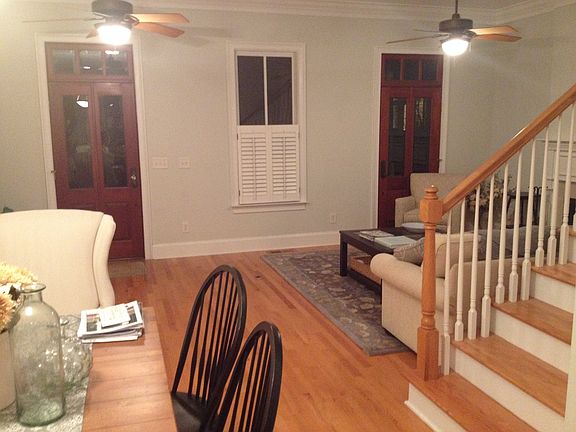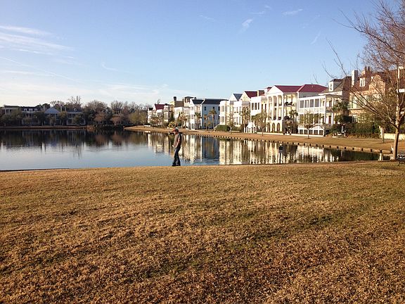 Memories of the past with full front porch, small cottage with master down. The open plan has Great Room, dining area and raised bar to kitchen. Great room has fireplace, french door to front of home. Hardwoods down stairs, moldings, cherry cabinetry in the kitchen, stainless appliances and desk area. The Master is down and spacious, built in chest off master closet. The large Master bath has dual sinks and large shower w 2 shower heads. Upstairs are 2 good sized bedrooms, all bath and great storage. Charleston gas lights on front, parking in rear or fence and put small yard. A carport could be added with approval from ARB. Just steps away to lake, Amphitheater and great walking neighborhood. Marsh walks and a place to put boat in Hobcaw Creek