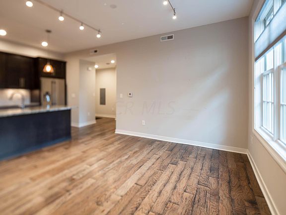 Hurry! RARE brand new 1br garden flat w/private attached garage & big courtyard patio in upscale Neighborhood Launch (newest ''6th St Mews II'' phase). End Unit w/sunny south exposure. Many upgrades inside: All wood floors (no carpet), pro-style appliances, white granite, beautiful backsplash & upgraded lighting, custom river-stone walk-in shower. King-size bedroom w/huge walk-in closet. In-unit full-size washer & dryer. Custom window shades. Convenient to shops and restaurants: 1 block to Hills Market Downtown, Cafe Roosevelt, Brioso, etc. Walk to all downtown offices, Capitol Sq, Capital Law School, CCAD, Columbus State, and more. Free water/sewer, trash & gas (range only); tenant pays electric. Short term OK (rates vary). Pets OK w/deposit & references. FULLY ACCESSIBLE. Agent owned.