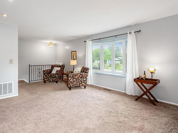 3 BR, 2.5 BA beauty in a great location, lovingly landscaped with large private fenced yard! Spacious living room with new bay window and built-in shelving opens to dining area, which is grounded by hardwood floors! Fully applianced cozy kitchen! Hall bath gives a mid-century modern vibe, and ensuite owner bathroom fully renovated with tile shower, new vanity, floors, sink, faucets, lighting and toilet! 3 roomy bedrooms! Head to LL to enjoy large family room w/ walkout to patio, including very nice newer Pella sliding doors and convenient half bathroom! Patio boasts lovely plantings & firepit! Newer furnace and AC, 2 car garage, newer storage shed and fenced yard complete the picture! Walk to schools, pool and park! Lovely home!