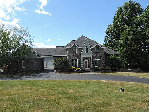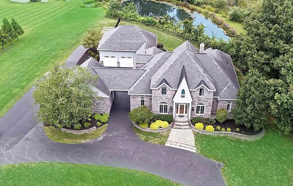 This home features a masterful design and if modern luxury is what you want, look no further. The gourmet kitchen has Dacor appliances, Subzerorefrigerator, three sinks, cherry Millbrook cabinets with soft close, marble countertops, cooling drawers, and a warming drawer. The great room has 20ft ceilings, a floor to ceiling fireplace, a wet bar, and a wine cooler. The main floor has 12ft ceiling and the second floor and basement have 10ft ceilings. The master bedroom is located on the first floor with a grand walk-in closet. All of the 5 garages are heated! This home has many great features: central vacuum system, alarm system, and speakers throughout.The backyard has a fully stocked pond, stone patio, and screened-in patio area. This home is located minutes from i90, Amazon, and Regeneron.