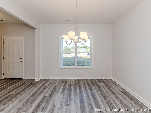 This beautiful, brand-new 2-story home on a quiet cul-de-sac offers a superb layout for modern living. A fabulous covered front porch invites you into a spacious foyer that leads into a formal dining room. The open-concept kitchen and family room provide ample space for entertaining. The kitchen is well-appointed with stainless steel appliances, sleek granite countertops, and plenty of counter space for meal prep. The great room features a cozy electric fireplace, perfect for warming up during cooler evenings.