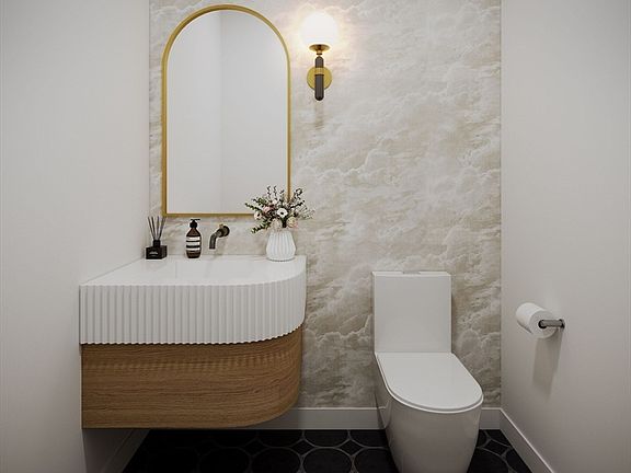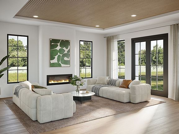 Curved fireplaceSpa-like bathTray ceilingPrimary suiteSoaking tubThermador appliance packageCustom mudroom