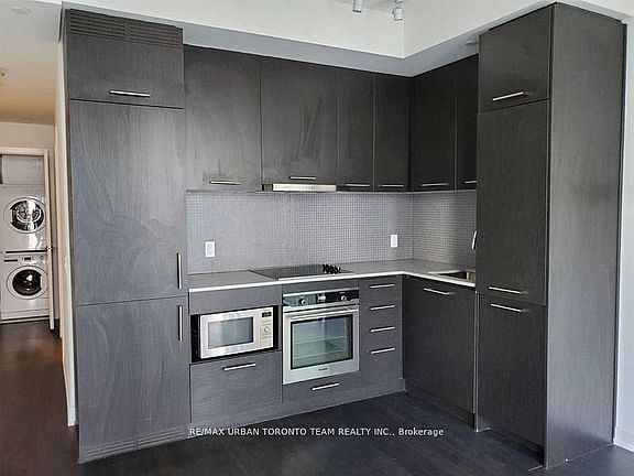 Corner unitLarge balconySouth city viewCn tower viewFloor-to-ceiling windowsModern design kitchenOpen concept