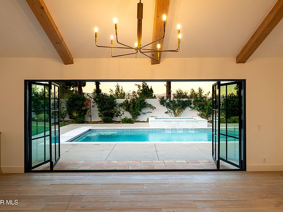 Gorgeous, fully upgraded single-story estate on a private ¾-acre view lot in the charming, gated community of Los Robles Hills Estates. This beautifully renovated home offers exceptional curb appeal with lush landscaping, smooth stucco exterior, high-end Euroline black steel windows, sliders and accordion doors, contemporary lighting, and a gated front courtyard with paver hardscape.