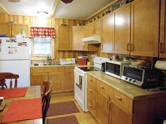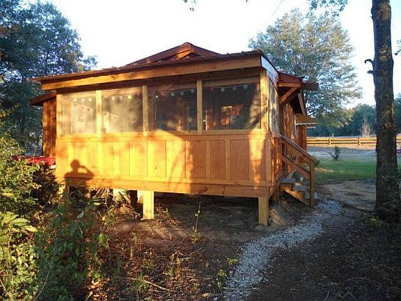 Most unusual 3/1 cabin home-Bamboo flooring, metal roof, maple cabinetry,heavy insullation, wood-burning stove, 10 x 16 screened in porch-outside entrance only, built on shop-12 x 12 & carport. Small covered front porch-Cedar siding exterior and wood rail fencing across front & side yard.