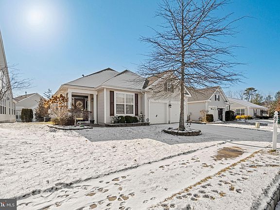 Popular Curacao model with covered front porch invites you into this open floor plan boasting gleaming wood flooring, crown molding and many custom finishes throughout. The spacious formal dining room is perfect for hosting large family gatherings, while the additional den/office space offers flexibility as a possible third bedroom. Beautiful custom white kitchen featuring ample cabinetry with pullouts, granite countertops, plantation shutters, a tiled backsplash, and a sunny breakfast nook for your morning coffee. A pantry closet provides even more storage space for your convenience. Relax in the cozy family room in front of the electric fireplace, complete with built-in bookcases, or gather around the kitchen’s center island while preparing a meal. Primary bedroom suite is a quiet retreat with a bay window and a walk in closet and an ensuite bath with a soaker tub, comfort-height double vanities and stall shower. The second bedroom is ideal for guests, and the nearby full bath has been beautifully updated with a new vanity. Laundry room is equipped with a washer, dryer, wash sink, broom closet and direct access to the two-car garage with pull-down stairs leading to extra storage above.  Enjoy peaceful moments in the sunroom with French doors or step out through sliders to the outdoor deck for some fresh air.  As a resident of Four Seasons at Mirage, you’ll enjoy access to incredible amenities that cater to an active lifestyle. The impressive clubhouse features a fitness center, ballroom, activity rooms, and both indoor and outdoor heated swimming pools. Stay active with three lighted tennis/pickleball courts, a putting green, and bocce and shuffleboard courts. Whether you enjoy fitness, relaxation, or social activities, there’s something for everyone at Mirage.  The town of Barnegat is close to shopping, restaurants, LBI beaches and a short drive to Atlantic City.  Don’t miss the opportunity to own this exquisite home in one of the area’s most desirable 55+ communities. Schedule your tour today and experience the Mirage lifestyle!