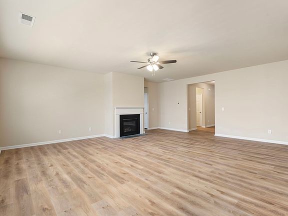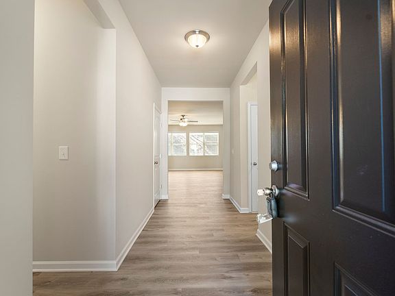 The home sits on a level lot with a covered back patio and wooded backyard view, giving you a private, relaxing outdoor space you can enjoy year-round. Inside, durable and beautiful LVP-style flooring runs throughout the main areas, with 2" faux wood blinds on every window for a clean, finished look and easy light control. The true no-steps ranch layout means all 4 bedrooms and 2 full baths are on the main levelno stairs to deal with, ever.