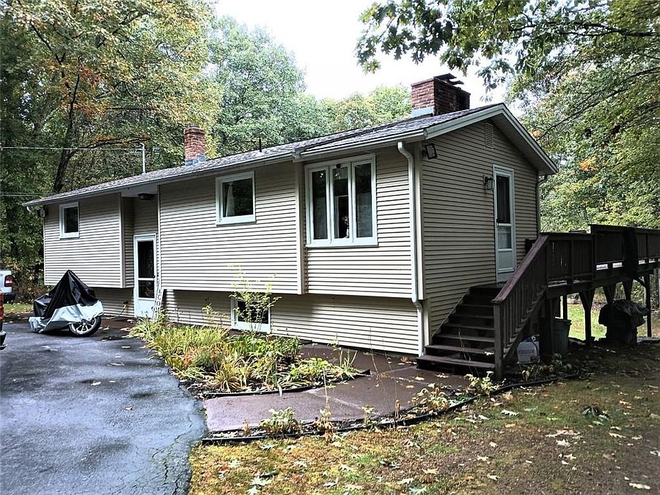 Beautiful 3 beds 1.5 baths raised ranch setting on a 3.44 Acre piece of nature lovers paradise in Scituate. The open upstairs floor plan opens to the large kitchen that has granite countertops with lots of cabinet space and a living room with a cozy fireplace that opens to large back deck you can enjoy nature from while having your morning coffee. Two spacious bedrooms and a full bath are also located on this upper level. The lower level has a finished family room with wood stove you can walkout to a patio and the in-ground pool. There is a third bedroom and a half bath on the lower level. Even though you are in the country you are still close enough to the highway to access any part of the state. Don't delay this piece of paradise will not last long!!!