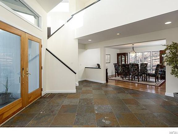 Random Farms - sought after neighborhood with pool, tennis, and clubhouse. High ceilings, lots of glass, exciting flow! State-of-the-art gourmet custom kitchen (2008) featured in Westchester Home and Cooking Light magazine with every high-end appliance and amenity. Open eat-in gourmet kitchen/family room, 1 fireplace with 2 hearths, scenic back drop of rock outcroppings, and large rear wrap-around, free form deck with hot tub. Architectural NanaWalls (folding glass walls) in kitchen and family room bring the outdoors in. Oversized master bedroom suite on separate level. Level land on side and in front. Rich O'Donnell, tax grievance consultant, has projected a 16% reduction in taxes based on the current listing price.