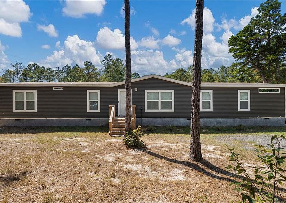 This beautiful 3-year-old 4-bedroom, 3-bath manufactured home sits on a spacious 1.2-acre flat lot in a quiet neighborhood. With 2,340 sqft to offer it blends modern style with comfortable living. Inside, you’ll find an open-concept layout with generous living spaces and a custom shelving system in the living room—perfect for books, photos, and décor. The large walk-in pantry keeps your kitchen organized, while the laundry room with built-in counters makes for additional storage. The primary suite is a true retreat, complete with a soaking tub, double vanity, and plenty of space to unwind. Step outside to enjoy the peaceful surroundings. The backyard backs up to a wooded lot, giving you extra privacy while still having neighbors!