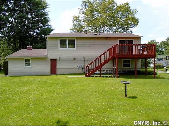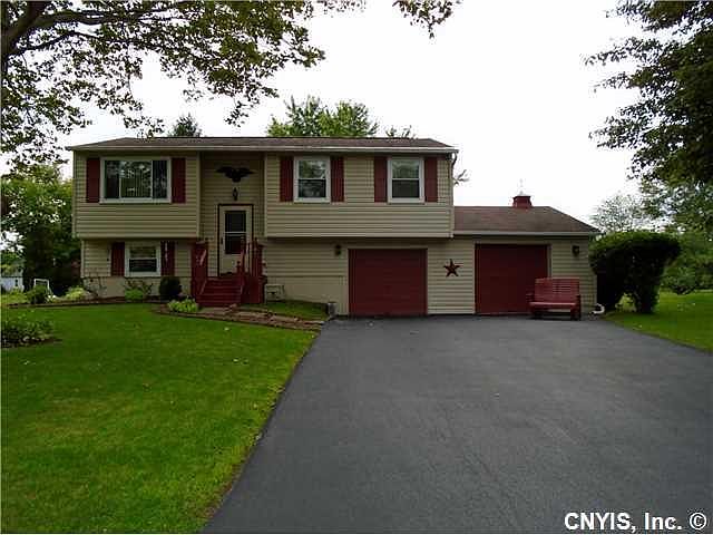 Curb appeal galore in this well maintained Raised Ranch with Comfort windows and siding. Two-car attached garage,Shed and 1/4 acre lawn. Sliding glass door to deck. Nicely done kitchen with Corian counter tops.Two full baths. Large family room with gas stove/fireplace.Newer Central Air and Furnace. Newer appliances stay including stove, fridge, washer and dryer. Oak banister staircase. Popular Village of Minoa location in East Syracuse-Minoa School District. SAVE $763 off of taxes a yr by applying Basic Star Exemptions