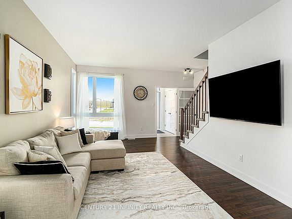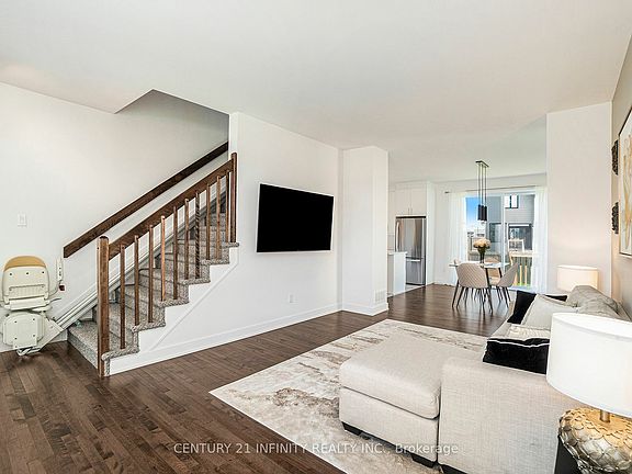 Welcome To 87 Rutile St! Located On A Pie Shaped Lot, Only One Year Young With A Full Tarion Warranty This Stunning Property Boasts Luxurious Upgrades With Modern Finishes Throughout, Making It The Perfect Blend Of Style And Functionality. As You Step Inside, You'll Immediately Notice The Attention To Detail, From The 5-Inch Contemporary Baseboards That Grace Every Room To The Hardwood Flooring That Flows Seamlessly Through The Living And Dining Areas. The Heart Of The Home Is The Gourmet Kitchen, Featuring Quartz Countertops, A Tiled Backsplash, And Sleek Black Accents. Black Pot Lights Illuminate The Space, While Pendant Lights Hang Gracefully Over The Expansive 8-Foot Island, Complete With A Convenient Microwave Cubby. The Kitchen Also Offers A Black Double Sink With A Matching Faucet And A Extended Cabinets With Crown Moulding, Providing Ample Storage For All Your Culinary Needs. Entertain With Ease In The Spacious Living Room, Bathed In Natural Light From The Large Upgraded Windows And 8x8 Foot Patio Door. The Adjacent Dining Area Offers Plenty Of Space For Family Gatherings And Dinner Parties. Upstairs, You'll Find Upgraded Luxury Vinyl Flooring Throughout The Second Floor, Providing Both Style And Durability. The Master Suite Is A True Oasis, Featuring A Stand Alone Tub, Rainfall Shower With Dual Shower Capabilities And A Handheld Option, Perfect For Unwinding After A Long Day. Additional Features Of This Exceptional Home Include All-Black Door Handles And Hinges, Black Keyless Entry, And Black Light Fixtures In Every Room. Plus, With A Power Supply In The Garage For An Electric Vehicle Charger And A Tankless Electric Water Heater, This Home Is As Efficient As It Is Stylish. Don't Miss Your Chance To Own This Exquisite Property. Schedule Your Showing Today And Experience Luxury Living At Its Finest! Chair Lift Can Stay Or Be Removed Prior To Closing.