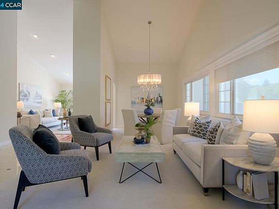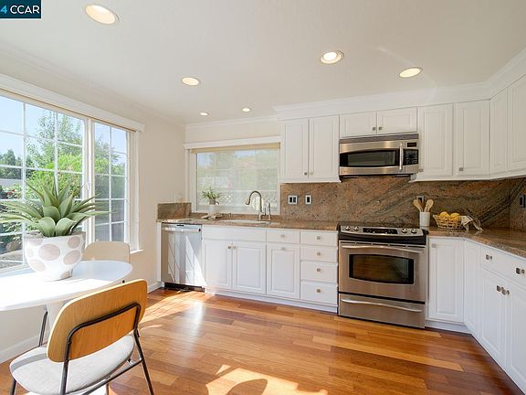 This Greenbrook rancher is a delightful property on a .27 acre lot with extensive patios and beautiful lawns and lush garden areas. The dramatic entry overlooks the elegant formal dining, living and family room. The Updated kitchen and spacious family room have hardwood floors and Anderson Sliders to the lovely rear grounds. Primary suite has built-ins, a walk-in closet, an updated bathroom and Anderson sliders which lead to a beautiful patio area with lots of enchanting flowers. Recent upgrades include paint and new carpeting. The proximity to the nearby park, community pool, tennis courts and Iron Horse Trails as well as top-rated schools definitely adds appeal to the property. The incredible view of the Westside hills from the backyard is a stunning addition to the overall charm of the home!