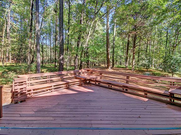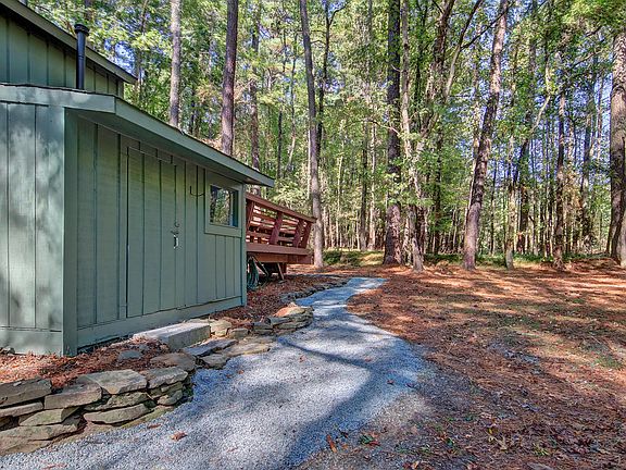 Nestled in the hardwoods and pines on a private 0.6 acre lot in popular Fearrington Village! Single-level living with large corner Deck accessed from both the Primary Bedroom and Family Room. Many rooms have vaulted ceilings. This home lives large for its size. Freshly painted both inside and out. Several skylights, oak HW flooring plus vinyl tile in both Bathrooms (no carpeting). Primary BR has glass sliders accessing the deck, WIC, large window plus ensuite with concrete top vanity & tiled tub/shower combo with skylight. Bedrooms 2 and 3 have large closets and access to the Full Bath in the Hall, which also features the Laundry Area with storage shelves. This spacious Full Bath has a large vanity with concrete top, tiled tub/shower with skylight, vinyl tiled floor. Kitchen offers granite tops, tiled splash, under-cabinet lighting, built-in MW, electric range, DW, fridge, pantry. Nearby Breakfast features vaulted ceiling and corner windows overlooking the wooded yard. Family Room has a wood-burning fireplace surrounded by a handsome solid wood mantel and granite hearth. Double bookshelves flank the glass sliders that access the Rear Deck; vaulted ceiling extends to the Dining Area with 4 corner windows. Nearby Hall Closet. Attic pull-down. Wonderful gardener's Storage Shed is attached and adjacent to a winding gravel Path that meanders from the Front Driveway (with several Parking Pads) to the Rear Deck. Concrete Front Path leads to the covered Front Stoop. Enjoy the sun-dappled under story of this lovely wooded lot in popular Fearrington Village!