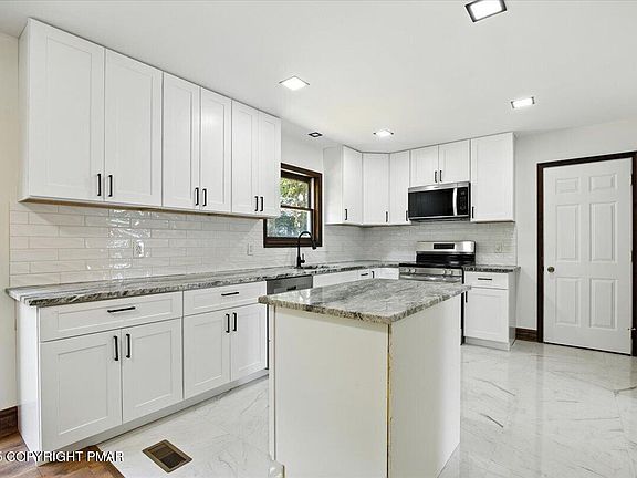 Welcome to College Hill Estates, where tranquility meets convenience! This charming 3-bedroom, 2.5-bath home with a 1-car garage sits on a quiet cul-de-sac within walking distance to East Stroudsburg University and Notre Dame Schools. Just minutes from major highways, restaurants, and shopping, the location is as practical as it is peaceful. Recent upgrades include a brand-new roof, kitchen with marble countertops and Stainless Steel appliances,and luxury vinyl floors.Home is equipped with central A/C, and a tankless water heater. The finished lower level is perfect for a game room, home theater, or family gatherings. With all public utilities for easy maintenance and a private setting tucked off the road, this home offers comfort, privacy, and convenience in one perfect package.