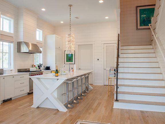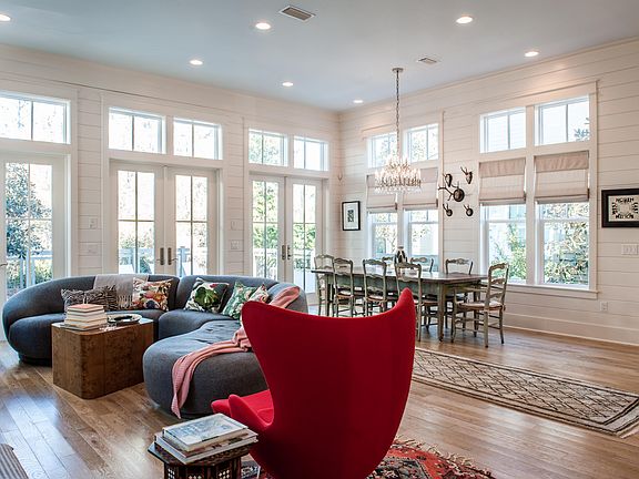 Bright and spacious Watercolor family home with a backyard oasis. Built in 2015, the last new build on Sunflower St! Never rented, well maintained, single owner home. As you walk into the home you are greeted by 12 ft. ceilings with floor to ceiling white shiplap and an open floor plan perfect for entertaining. The living room looks out back with three sets of French doors that open into serene outdoor living area featuring a fireplace, pool, and hot tub. A crisp white chef's kitchen with top-of-the-line Sub-Zero, Wolf and Asko appliances with an expansive white quartz island. Easily accessible first floor master off the entryway with a spacious bathroom, beautiful freestanding tub and a sky high walk-in Carrera marble shower...As you reach the top of the stairs you enter into the second floor master with a walk in closet, gorgeous master bath full of Carrera marble and private porch overlooking the pool and tranquil backyard. The second floor office was converted from having two sets of bunk beds into an office space and can easily be converted back. The second floor also includes two grand guest bedrooms, one with access to large screened in porch. Each with their own private bath. Conveniently located next to dragonfly community pool as well as vast parks. Don't miss out on this move in ready sanctuary!