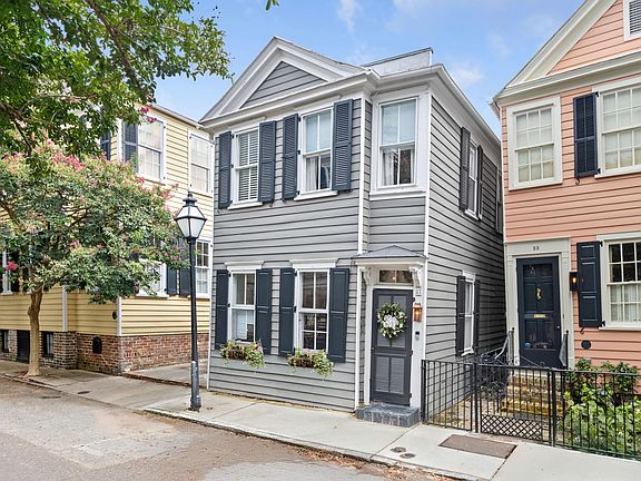 Classic Charleston Single on lower Tradd Street, between King and Meeting. It has been previously updated while retaining its charm and history. You enter through the front door into a formal living room with a fireplace. The separate dining room offers cozy banquette seating. The generous kitchen and sitting room lead to a magical private & gated courtyard. The courtyard offers enough room for multiple sitting areas and configurations. A half bath is on the main floor. The three bedrooms are on the second floor. Two of the bedrooms feature ensuite baths. The master bath is spa-like with a large soaking tub. The laundry area is conveniently located on the second floor. On-street parking for 2 vehicles through permits.