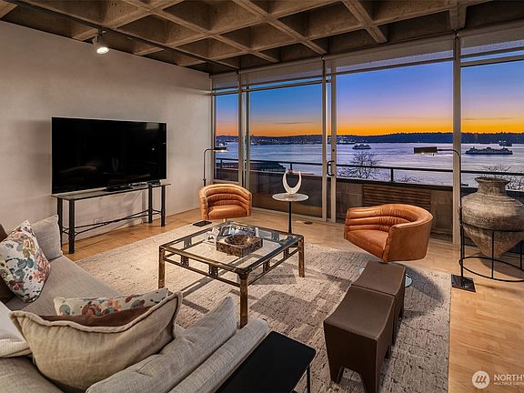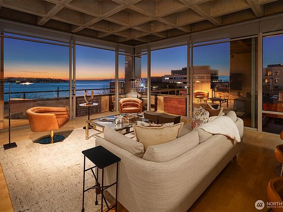 Architectural aficionados consider 87 Virginia, known as the Pike & Virginia Bldg, to be the ultimate expression of Architecture as Art. Designed by Gordon Walker of Olson/Walker Architects & Jim Olson of Olson Kundig Architects & situated in an unrivaled location at Seattle’s Historic Pike Place Market. An open concept floor plan offers compelling sound & Mtn views, iconic concrete & steel, floor to ceiling glass, coffered ceilings, balcony, concrete floors under hdwd & AC. A beautiful kitchen w/birds eye maple cabinets, stone counters, gas cooking & 2 ovens. A romantic dual sided gas fplc, beautiful 3/4 bath w/ vintage hardware, W/D & abundant storage. An exceptional home, retreat or pied-a-terre in the center of the city. Pkg & stg incl.