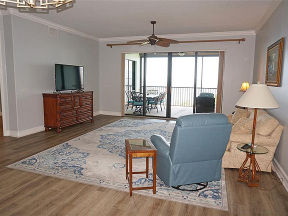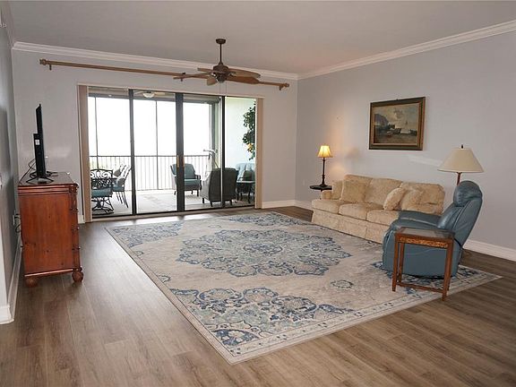 FABULOUS HAROR VIEWS! Stunning 3 Bedroom, 3 Bathroom penthouse unit at the desirable resort style gated community of VIVANTE in Punta Gorda Isles. A fob allows you to call the elevator which takes you to the fourth floor and opens directly into this beautiful impressive unit. You enter the grand foyer and continue to the Great Room. Amazing HARBOR VIEWS from the Great Room, Kitchen and Master Bedroom. This light and bright unit has a true open and split bedroom floor plan with Great Room, well appointed Kitchen, screened Lanai, Inside Laundry. The spacious Great Room opens to the Kitchen, has a large Dining Area, high ceilings and sliding glass doors that lead to the Lanai. The Kitchen features gorgeous granite counters, tile backsplash, wood cabinets with pull outs, breakfast bar, island with additional storage, stainless refrigerator, oven/range, dishwasher, built in microwave. The Kitchen was updated in 2021. Steps from the Kitchen is a closet with a dry bar furniture piece. The Inside Laundry offers a washer, dryer , shelving and sink with cabinet. The Master Bedroom suite is your private oasis with water views, lanai access, tray ceiling, two walk in closets and private bathroom with dual sinks, granite counters, wood cabinets, jetted garden tub and walk in shower. The guest bathrooms and two additional bathrooms are on the opposite side of the unit offering privacy for you and your guests. Both bedrooms are generous sized, have walk in closets. One bedroom has a Murphy bed and private bathroom with wood vanity, granite counters and tub/shower combination. The third bedroom also has a walk in closet and the hall bathroom has a wood vanity, granite counters and tub/ shower combination. Your living space extends via the Great Room to the 17x15 lanai with expansive views. This unit has an under building assigned parking space and and storage space. Utilities are city water and sewer. Other features include wood shelving in all the closets, impact glass, luxury vinyl plank flooring in the Great Room, Kitchen and Master Bedroom, tile in the bathrooms and carpet in the guest bedrooms. Updates in 2021-2022 include the LVP and carpet flooring, plantation shutters in the bedrooms, several new light fixtures, A/C, new interior paint, great closet space. Community amenities at Vivante include TWO heated pools (one is a 2 lane lap pool) and the other is a resort style infinity edge pool), 6 har tru tennis courts, cabana with grills and a 12,000 SF upscale two floor clubhouse with state of the art fitness center, media room, cyber lounge, billiard room, game/car and craft rooms, steam room, sauna, spa services for manicures, pedicures, massages and more, club room with bar for entertaining, sidewalks and paved brick walking paths, lots of activities and more! The buildings are beautiful Mediterranean style and the grounds have lush tropical landscaping. Walk to Ponce De Leon Park and only minutes to Fishermen's Village, Golf and historic downtown Punta Gorda shopping, dining, medical care, waterfront parks, fishing piers, boat ramps, walking and biking paths,art galleries, events and more. This is the Florida lifestyle at its finest!