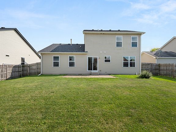 This sweet 2-story home is located within the SYCAMORE SCHOOL DISTRICT with NO HOA FEE and NO SSA TAX! The original owners have cared for this home, and it shows! Clean and pretty, newly painted, and extremely well-maintained. A brand new 2025 Theisen architectural shingled roof offers a transferable warranty. A covered front porch and a full glass storm door welcome you! Enjoy the fenced-in backyard showcasing a brick paver patio! The entry foyer area hosts a coat closet and an open spindled staircase. The 18'x14' spacious Living Room presents a creamy color scheme. There is a private Dining Room with a black chandelier for all your special gatherings. A fully applianced kitchen showcases an oiled bronze light fixture, Bosch dishwasher, all black appliances, gray-beige countertops and flooring, and a pantry closet. Wait, there is more! Another comfortable hangout area is the Family Room with a ceiling-light fan, giving more living space for a busy lifestyle and entertainment. Upper level laundry area features a Samsung washer and gas dryer, and a nearby shared linen closet. The primary bedroom suite boasts a walk-in closet and a private bathroom with two sinks, tub/shower surround, and an additional linen closet. Ceiling-light fans, window blinds, and curtains furnish all the bedrooms. The concrete basement comes equipped with a 2025 new water heater, an Aprilaire humidifier, a water softener, a passive radon system, a Trane furnace, 200-amp electrical service, an egress window, and copper plumbing. As a bonus, there is a generator hook-up system and an air compressor hook-up system. Close to parks, a splash pad, and interstate access. This is an opportunity to LOVE your new HOME and its COMMUNITY! Priced smart to sell quickly, do not let this lovely home slip away!