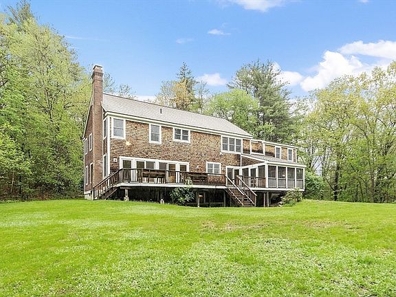 This bright and spacious home has it all! Large custom-colonial sits on 5.8 acres abutting walking trails, Wheeler Pond, & 15 acres of conservation land. Custom mudroom & updated powder room flows into sunlit, oversized, designer, eat-in kitchen featuring Calcutta marble countertops & peninsula, tiled backsplashes, Shaws Farmhouse sink, 2 pantries, desk area w/bookcase, all opening to a fire placed family room with a wall of sliders. Sensational screened in porch off the kitchen provides a serene escape & great spot to entertain. Large DR & French door LR, foyer, & large closets complete the 1st floor. Upstairs discover a cozy reading nook, 4 bedrooms including the dreamy primary suite with walk in closet & en suite bath. Surprises include wide plank wood floors, laundry room, charming playroom & enormous bonus room! The walkout LL & walk-up UL have endless possibilities for expansion. Close to commuter routes & top-rated NRSD schools. The perfect tranquil spot to call home.