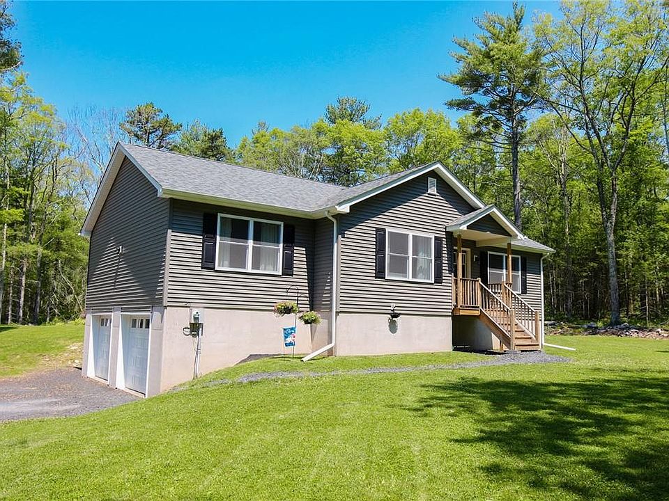 Welcome to the Pine View Estates subdivision located on a beautiful dead end street. Close to downtown with all new shops, restaurants, brewery and near public transportation (bus and train) making for an easy commute! Enjoy the Delaware River with fishing, rafting and kayaking. This beautiful ranch on 6+ private acres includes 3 Bedrooms, 2 Full Bathrooms, cathedral ceilings, hardwood floors throughout, cozy fireplace and central A/C! The well appointed kitchen boasts quartz countertops, a center island, tiled back splash and a dining area with sliders leading out to the back deck and above ground pool. The master suite is complete with tray ceilings, walk-in closet and private bath with double vanities, soaking tub and a tiled shower with semi frameless glass doors. Expansive full finished basement and two car garage included. Additional Information: Amenities:Soaking Tub,ParkingFeatures:2 Car Attached,