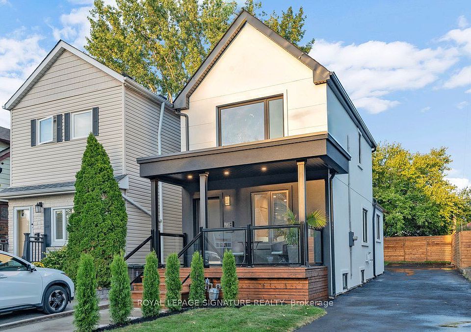 Urban sophistication meets contemporary comfort in this show-stopping East York detached home! With 3 bedrooms, 4 bathrooms, and a private drive for up to five cars!! Tucked away on a quiet, one-way residential street, it offers rare privacy in the heart of the city just steps from everything that makes East York so desirable. Step inside and be captivated by sleek design, seamless flow, and natural light at every turn. The bright, open-concept living and dining area features a striking feature wall and designer lighting that set the tone for stylish entertaining. The chefs kitchen steals the show with a massive quartz waterfall island, gas range with pot filler, floor-to-ceiling cabinetry, and glass display accents statement of both beauty and function. From here, walk out to your private entertainers deck and sprawling backyard, perfect for summer nights and weekend gatherings. Upstairs, your primary retreat awaits, complete with a loft-style lounge area under a skylight, a double closet, and a spa-worthy ensuite with floating vanity, rainfall shower, and custom glass detailing. Two additional bedrooms offer custom built-ins, warm hardwood flooring, and a chic shared bath with designer finishes. The finished lower level adds lifestyle flexibility with a cozy recreation room, feature wall, and 3-piece bath, ideal as a fourth bedroom, guest suite, or media space. Unbeatable location just minutes to Donlands Station, The Danforth, parks, schools, and the DVP.